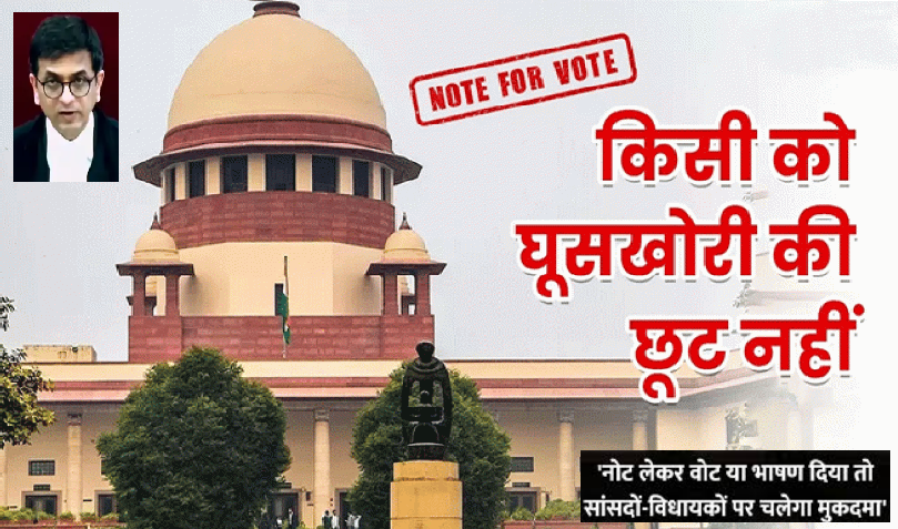 घूस के मामलों में सांसदों, विधायकों को नहीं मिलेगी छूट : सुप्रीम कोर्ट