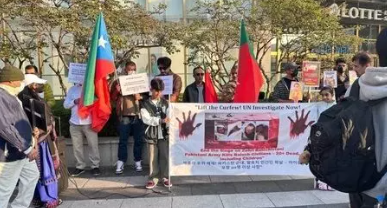 दक्षिण कोरिया में पाकिस्तानी सेना के खिलाफ प्रदर्शन, ‘बलूच नरसंहार बंद करो!’ वाला बैनर लेकर जताया विरोध